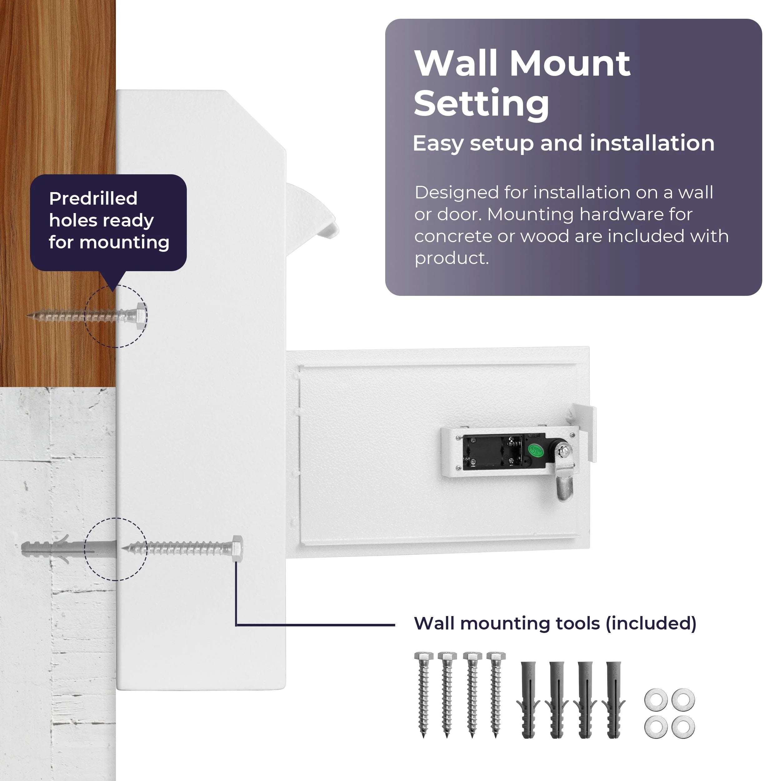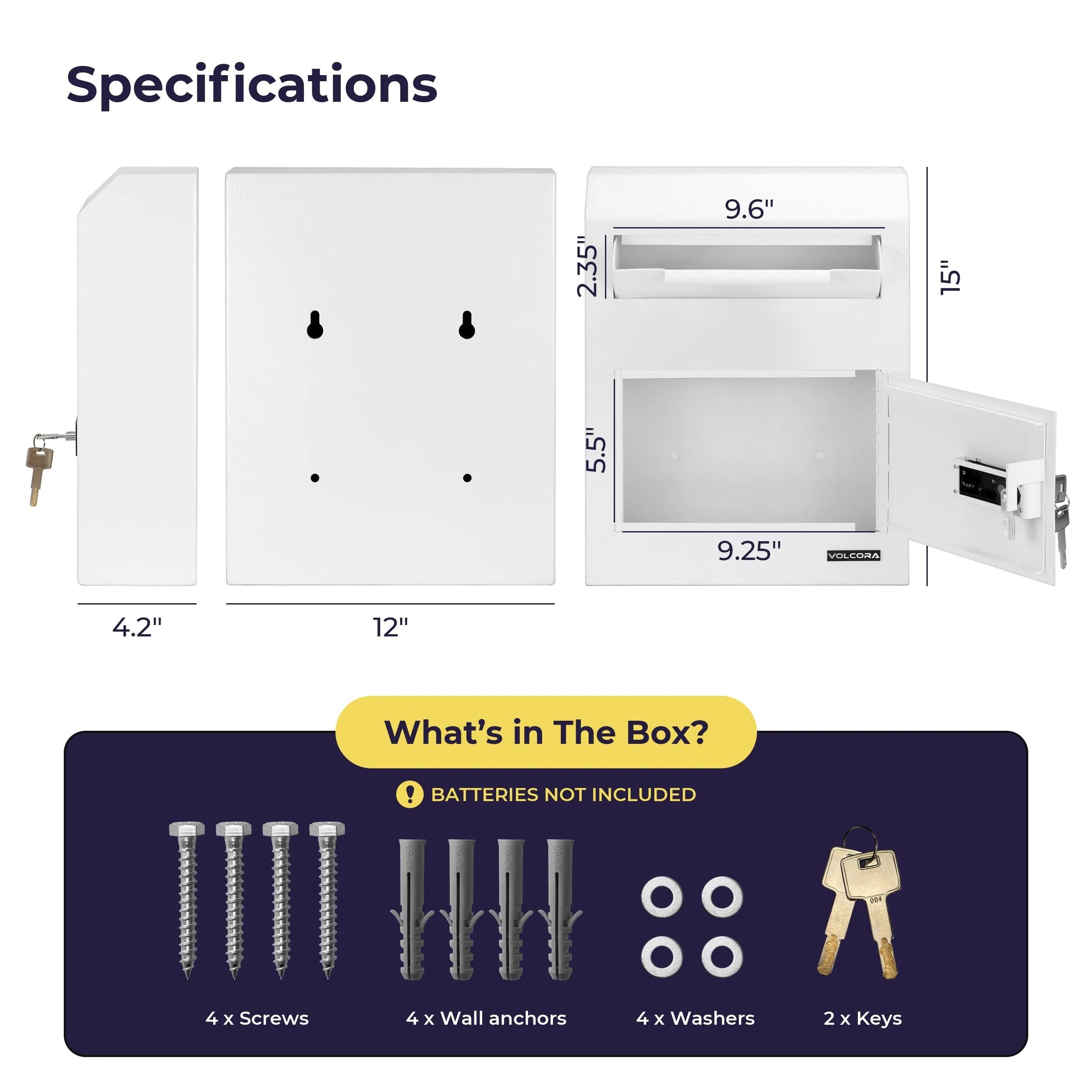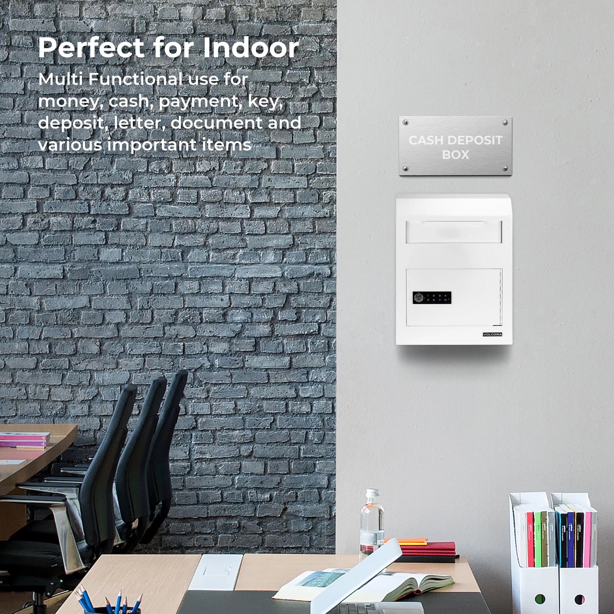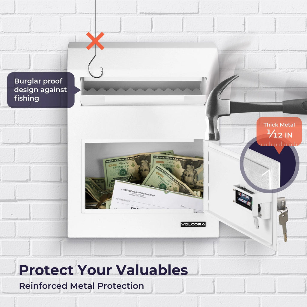 Volcora Wall Mount Digital Keypad Lock Drop Safe - White